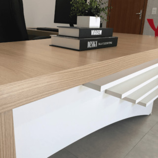 Decore e organize seu escritório para maior produtividade com a Mesa Diretor, que possui design moderno e arrojado, deixando o ambiente sofisticado e requintado! Com estrutura em MDP, e partes em Tamburato de 50mm de espessura, o móvel é robusto e de alta qualidade, o que garante sofisticação a qualquer ambiente. Detalhes curvos na parte externa garantem elegância e um design único e contemporâneo ao produto.