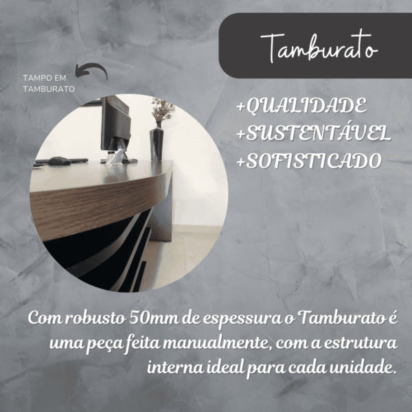 – Tampos e pés em Tamburato de 50mm de espessura;