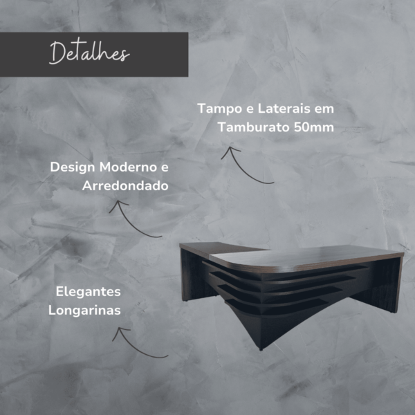 Decore e organize seu escritório para maior produtividade com a Mesa Diretor, que possui design moderno e arrojado, deixando o ambiente sofisticado e requintado! Com estrutura em MDP, e partes em Tamburato de 50mm de espessura, o móvel é robusto e de alta qualidade, o que garante sofisticação a qualquer ambiente. Detalhes curvos na parte externa garantem elegância e um design único e contemporâneo ao produto.