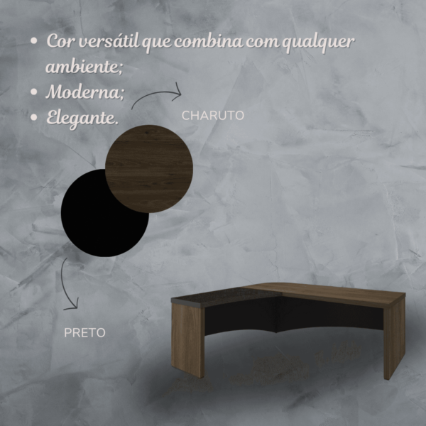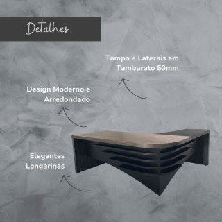 Visando maior funcionalidade e conforto, a mesa possui uma ampla superfície de trabalho, para que você possa acomodar tudo o que for necessário de forma fácil e prática. Revestimento em BP e bordas em PVC proporcionam ao móvel maior durabilidade e resistência a impactos, umidade e atrito. Você vai se encantar!