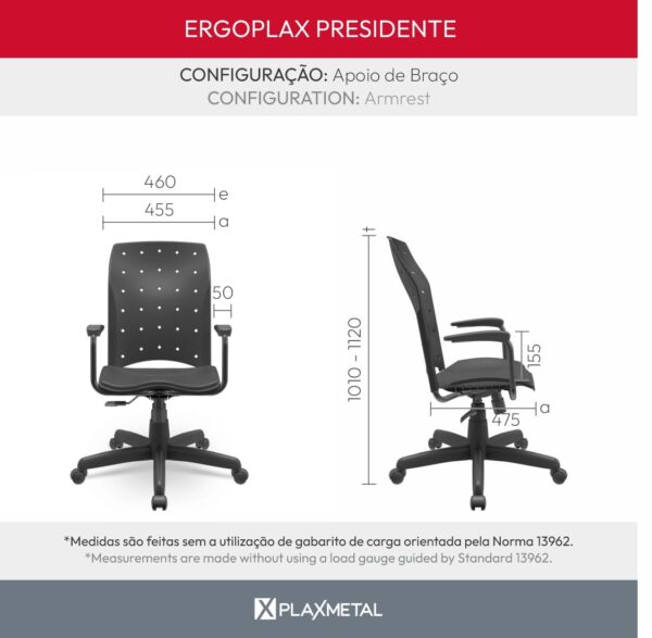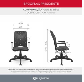 A Ergoplax mostra que um design diferenciado inclui detalhes. Seus modelos foram projetados para mesclar cores, materiais e configurações, permitindo composições contemporâneas. O modelo Presidente possui estofado preta no assento, sete opções de cores para assento e encosto e estrutura nas cores preta ou cinza.